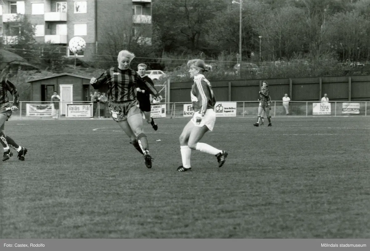 Titel: Fotbollslaget Jitex BK spelar match på Kvarnbyvallen i Mölndal, år 1989. Okänt motståndarlag och slutresultat.