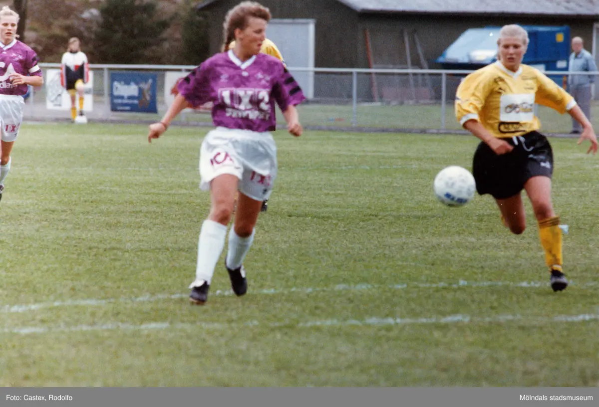 Fotbollslaget Jitex BK spelar match mot Lindsdals IF på Kvarnbyvallen i Mölndal den 29 maj 1993. Jitex BK förlorade matchen med 2-3.