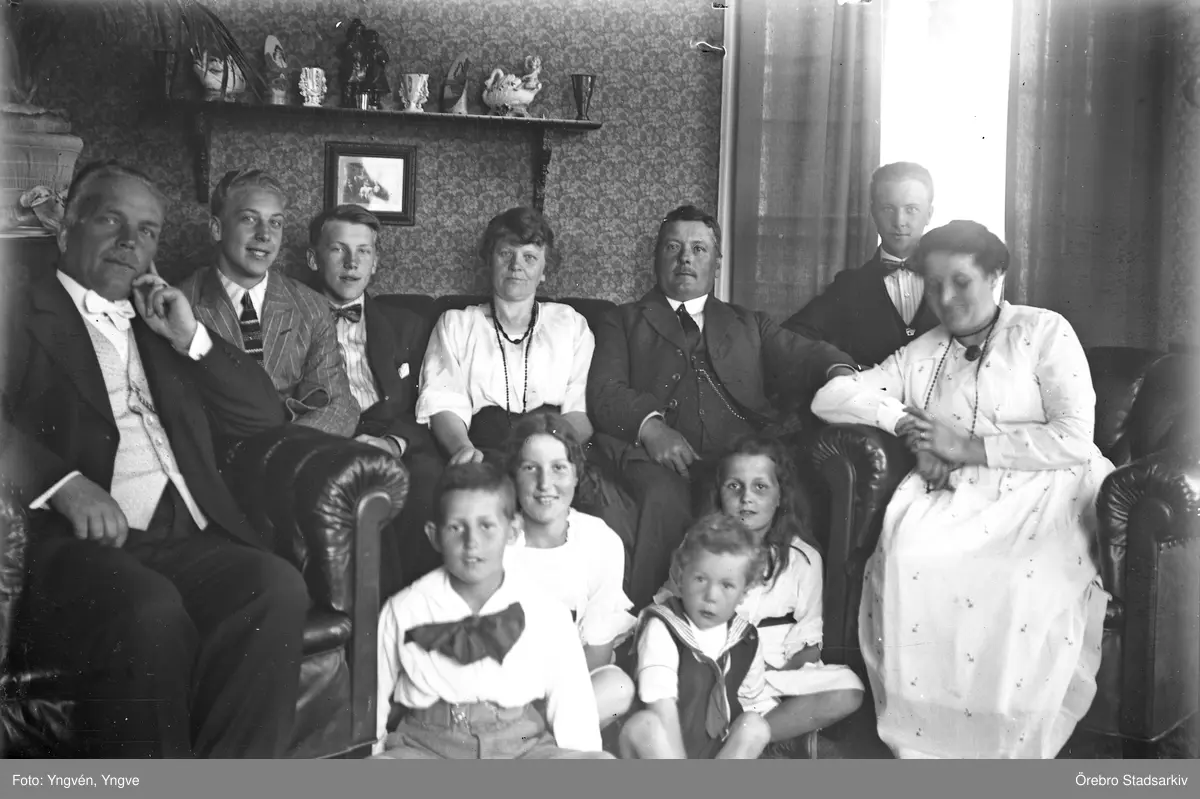 Familj samlad framför kameran, 1920-tal