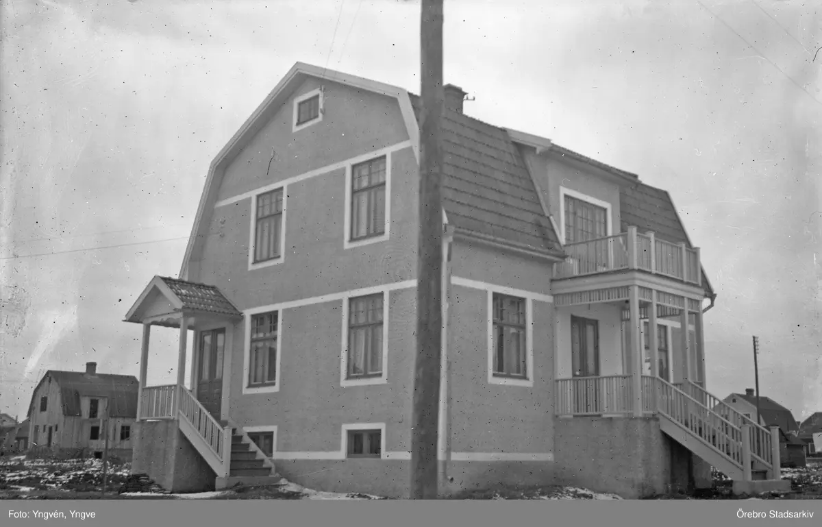 Reverterat hus i Örebro och nybyggnation pågår bakom, 1920-tal