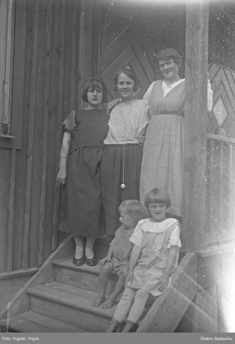Kvinnor och barn i en yttertrappa på landet, 1920-tal