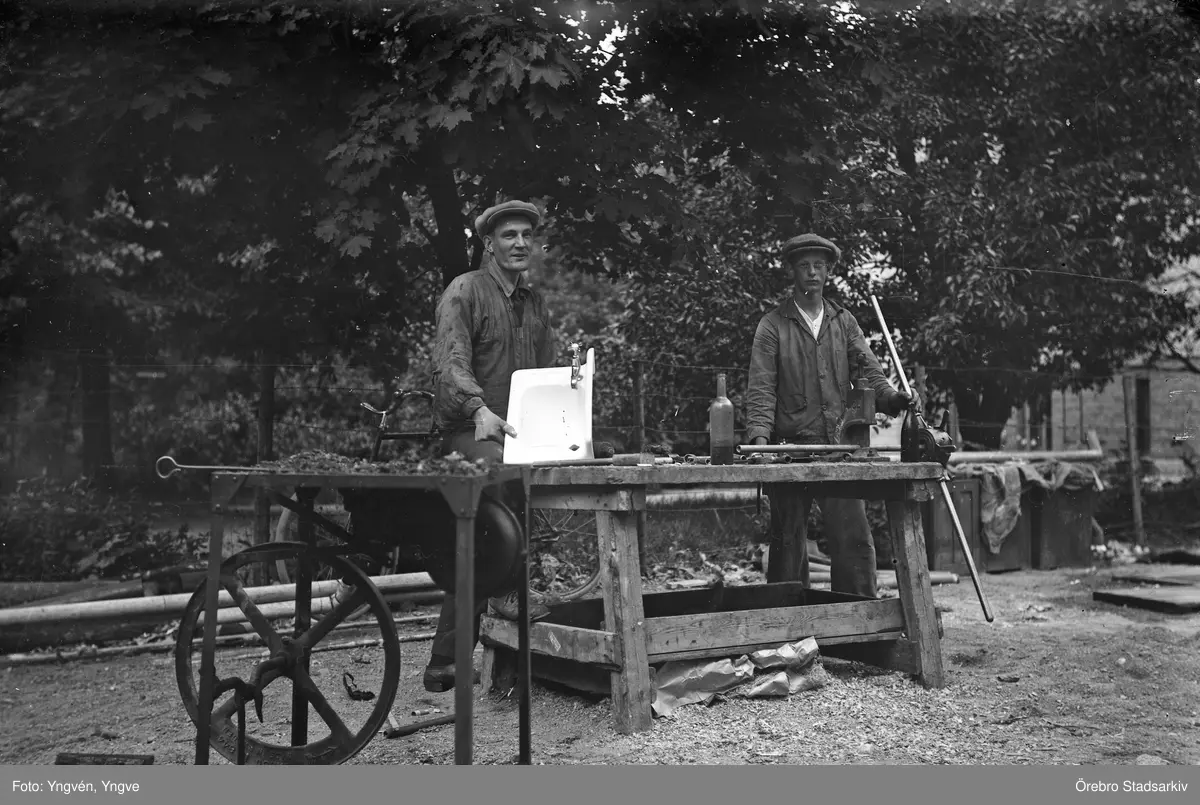 Rörmokare vid arbetsbänk, 1920-tal
