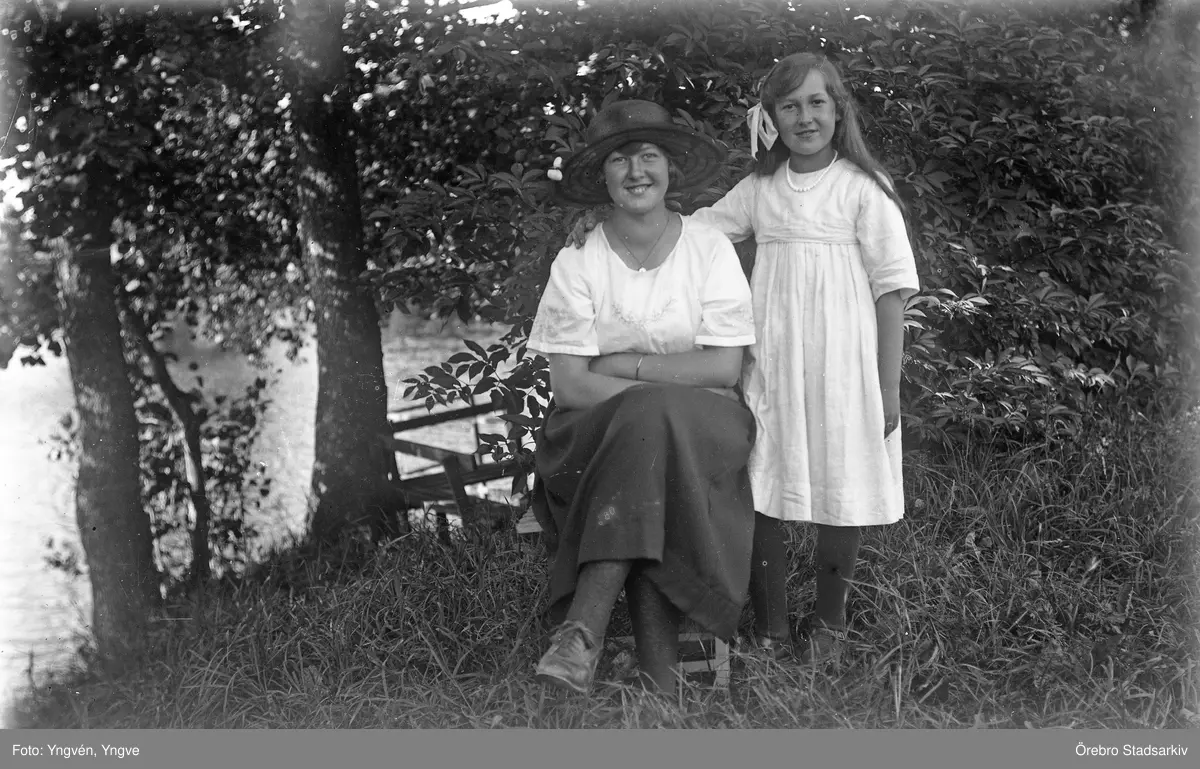 Mor och dotter vid Svartån i Örebro, 1920-tal
