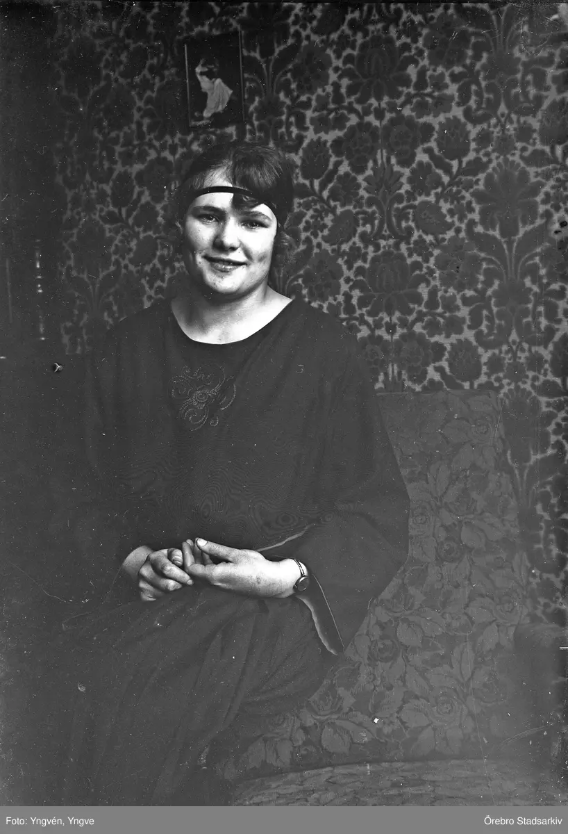 Porträtt av ung kvinna med pannband, 1920-tal