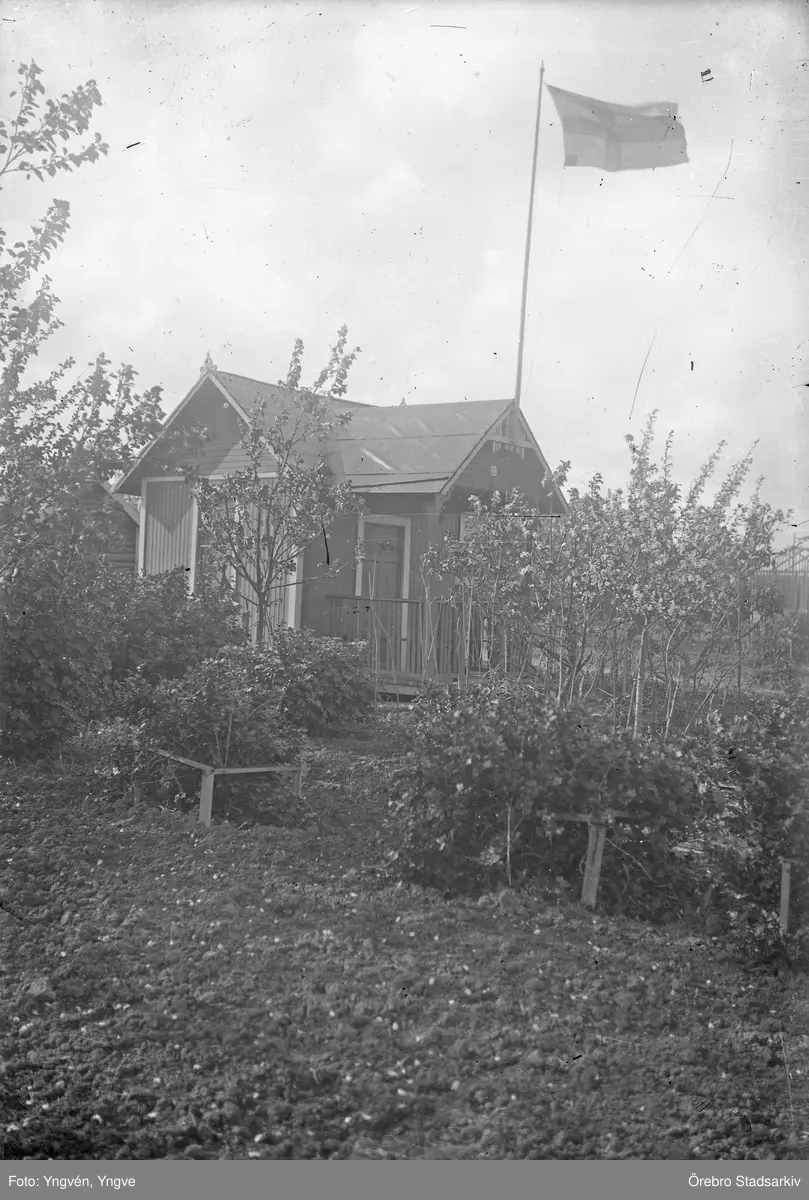 Flaggan vajar över kolonistuga i Örebro, 1920-tal