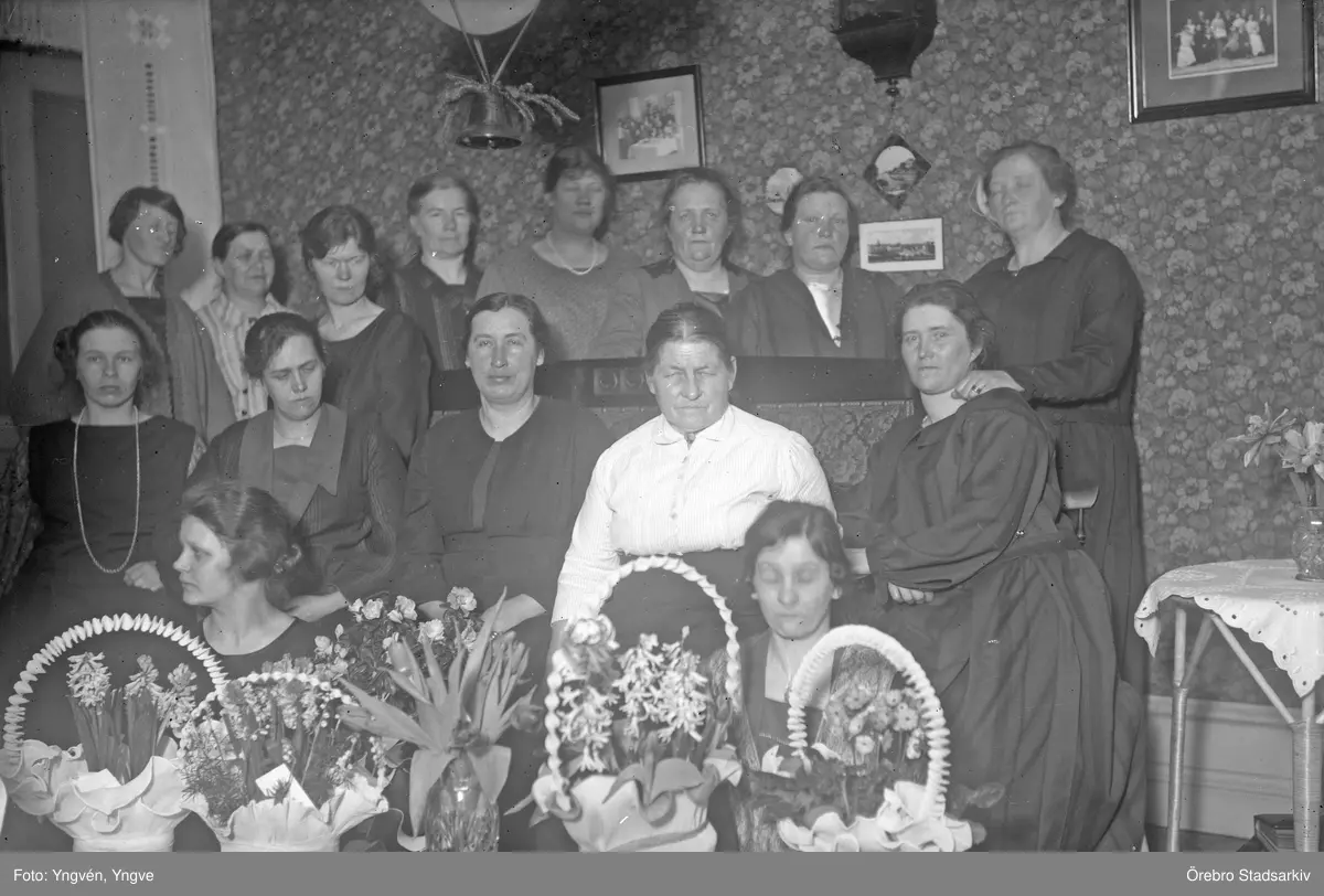 Kvinnogrupp med blomsteruppvaktning, 1920-tal
