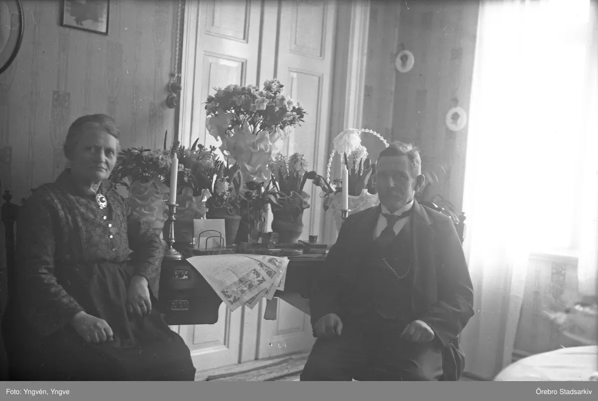 Man och kvinna med telegram och blomsteruppvaktning, 1920-tal