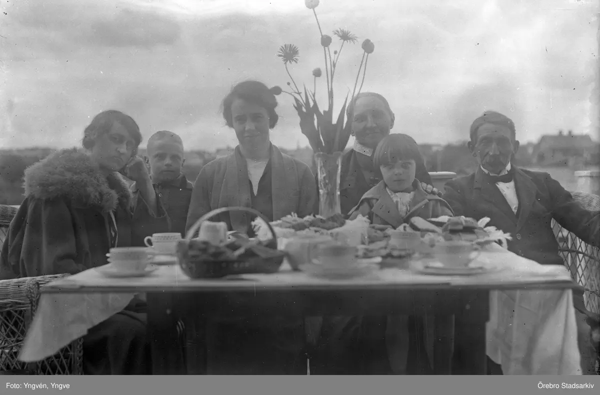 Kaffebjudning med kakor på balkongen, 1920-tal