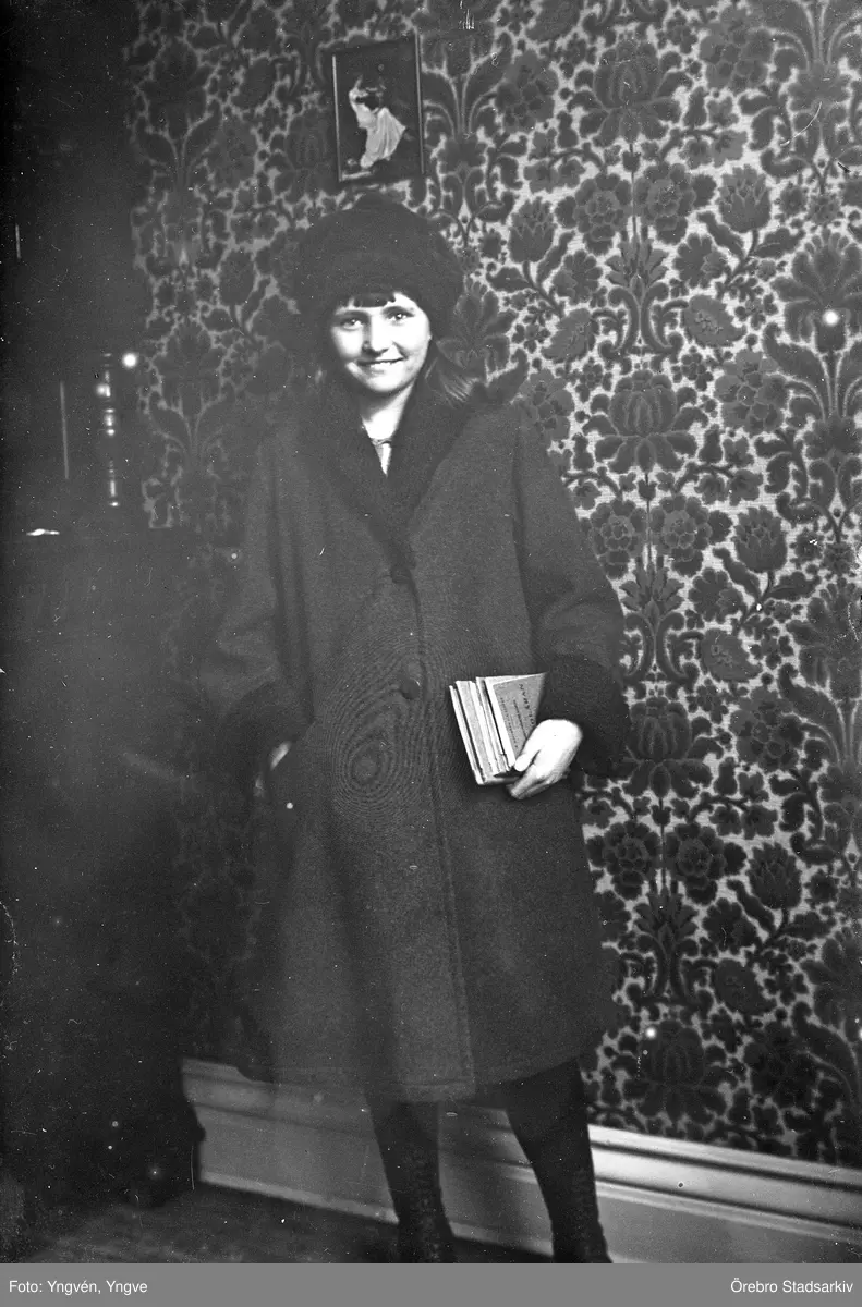 Porträtt av en ung elev med skolböcker, 1920-tal