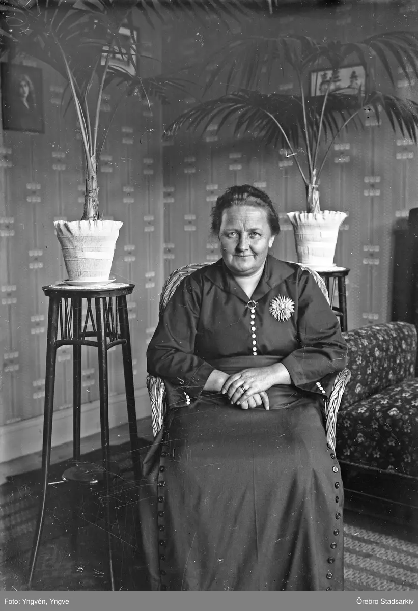 Porträtt av kvinna i korgstol, 1920-tal