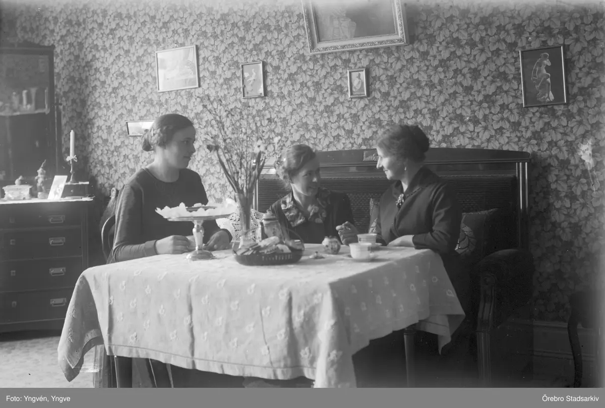 Tre kvinnor samtalar över en kopp kaffe, 1920-tal