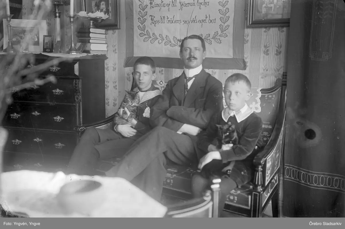 Man med två söner och husdjur, 1920-tal