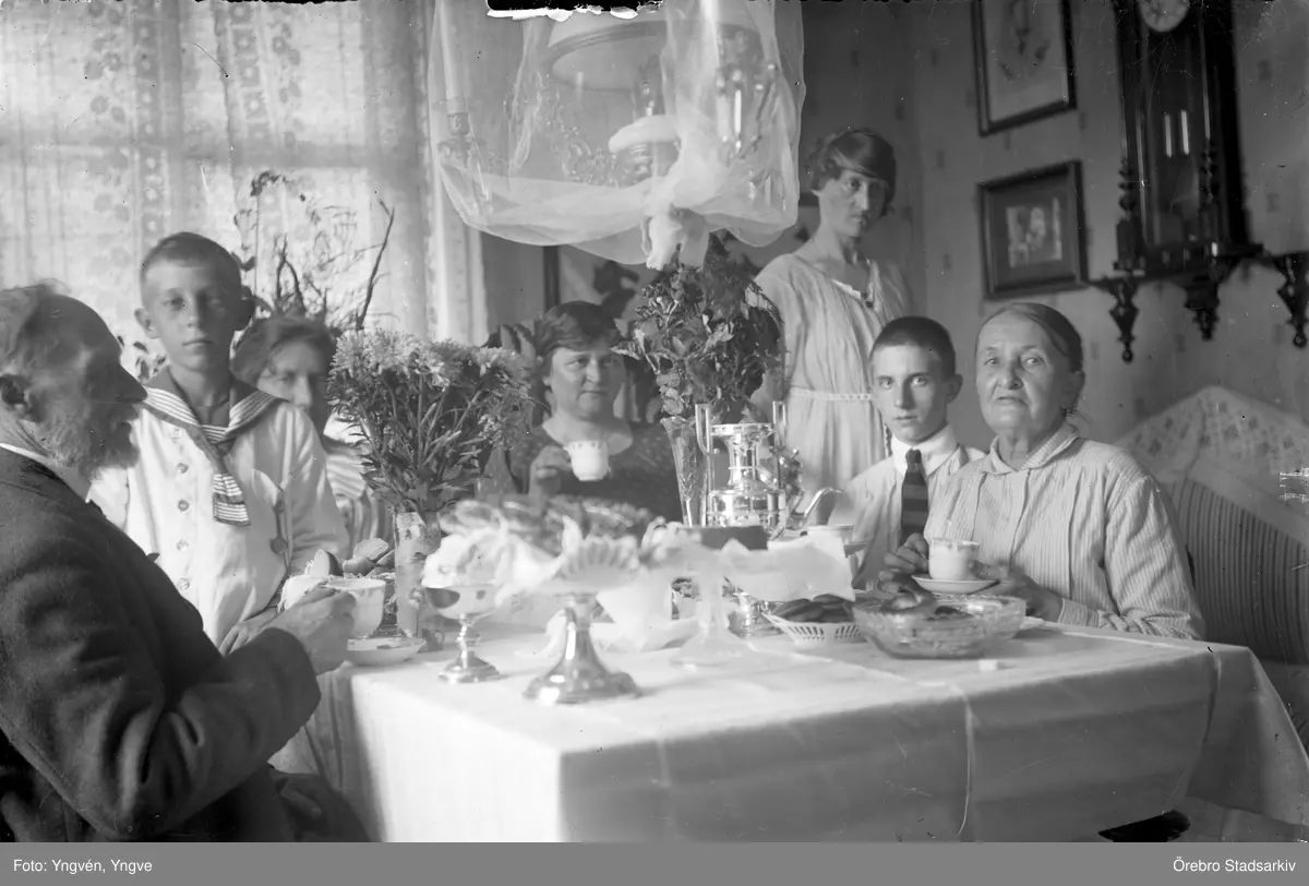 Familjen samlad på bemärkelsedag, 1920-tal
