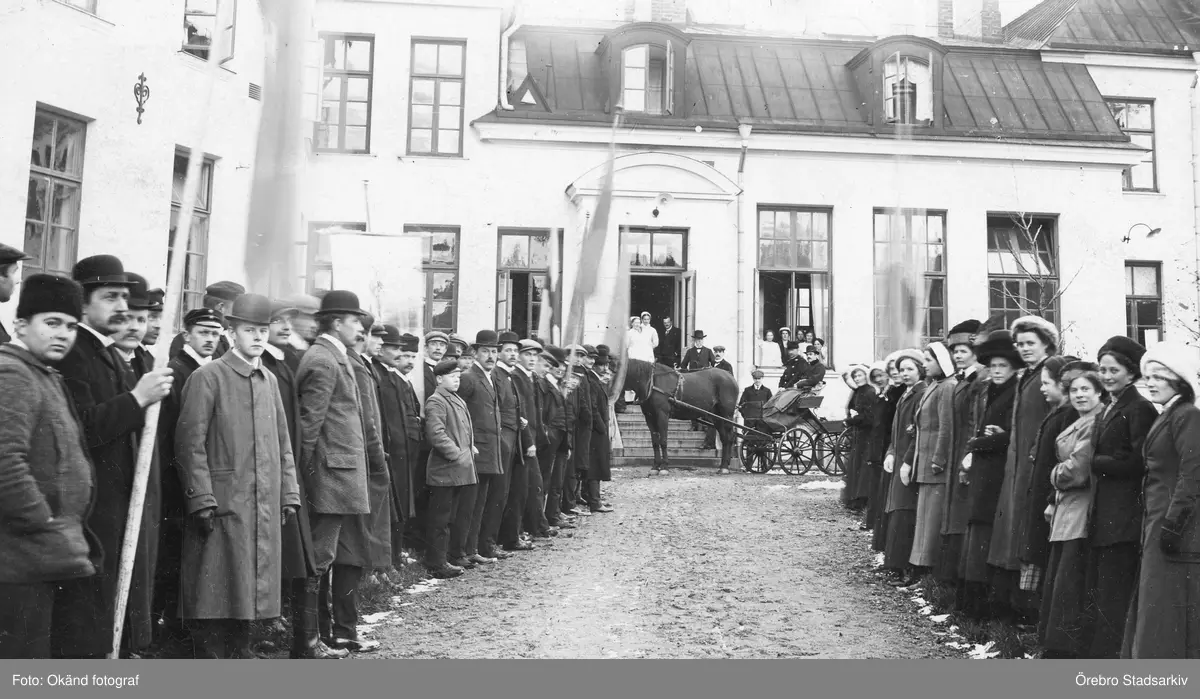 Personal och allmänhet på Hålahults sanatorium i väntan på kung Oscar, 1900-07-13