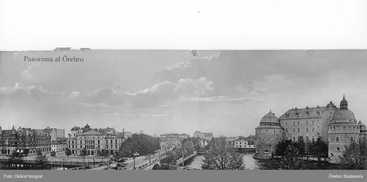 Panorama över Örebro med storbron i blickfånget, 1910-tal