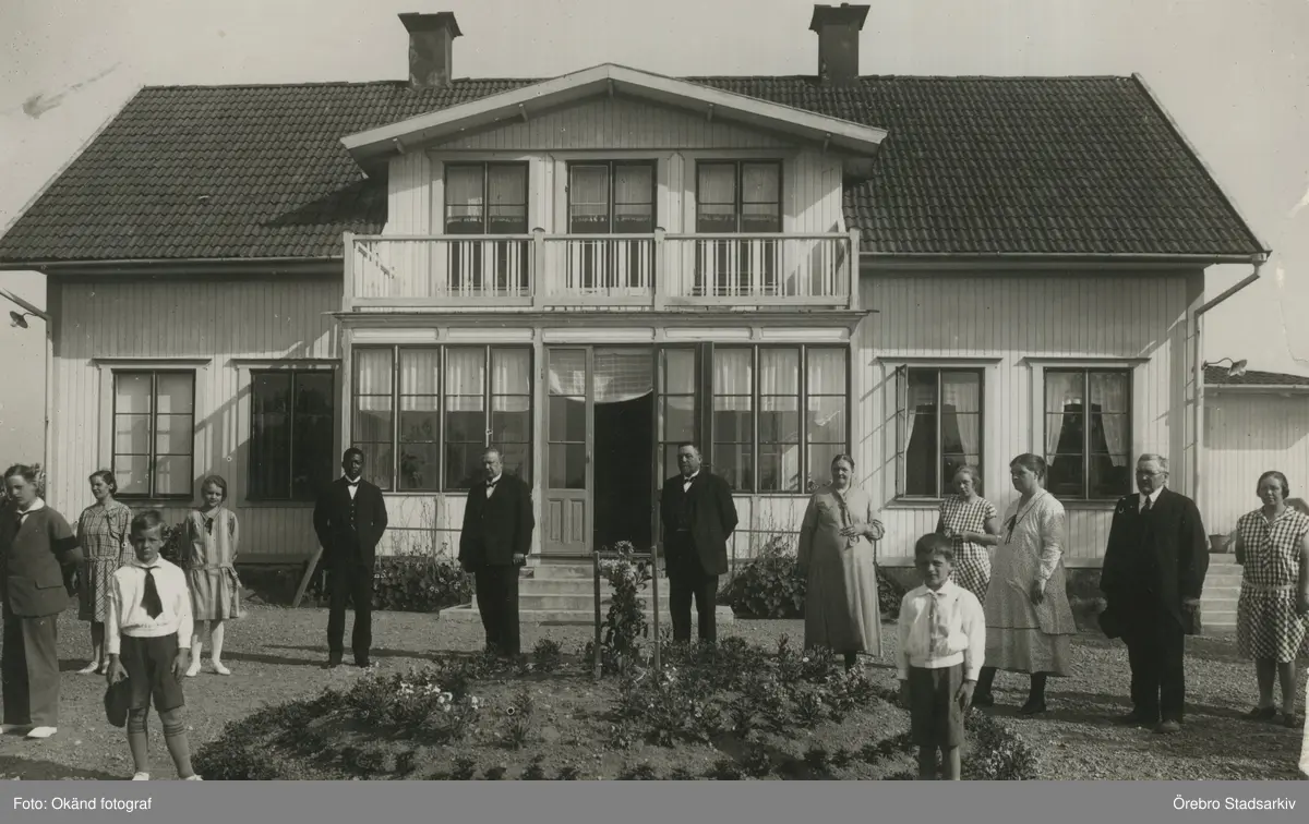Familjen samlad på gårdsplanen i Brandtorp, 1930-tal