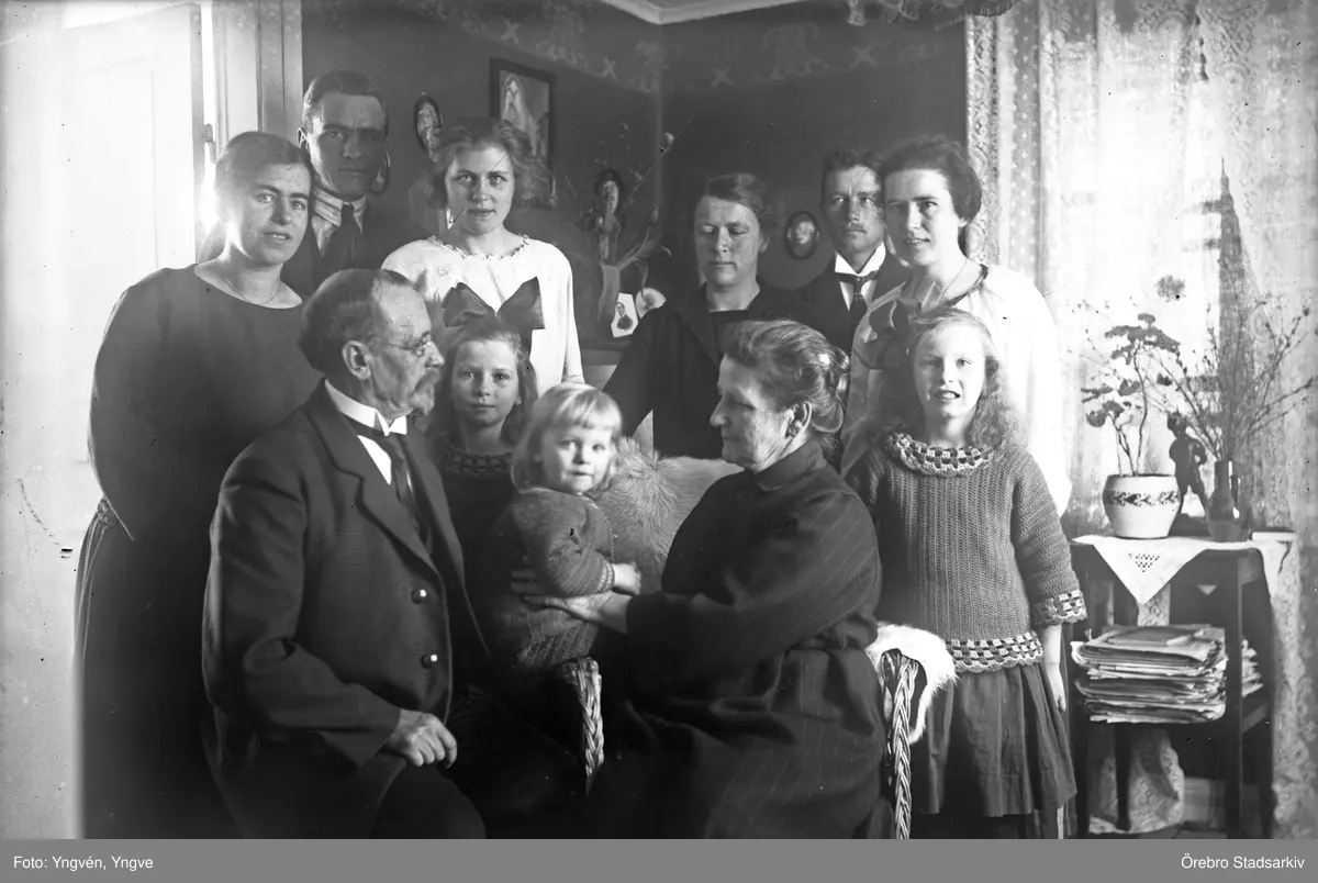 Hela familjen samlad framför kameran i Örebro, 1920-tal