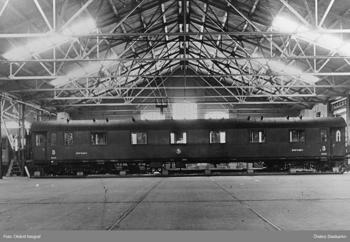 Golvtravers med sovvagn i vagnverkstaden på Centralverkstäderna, 1950-tal