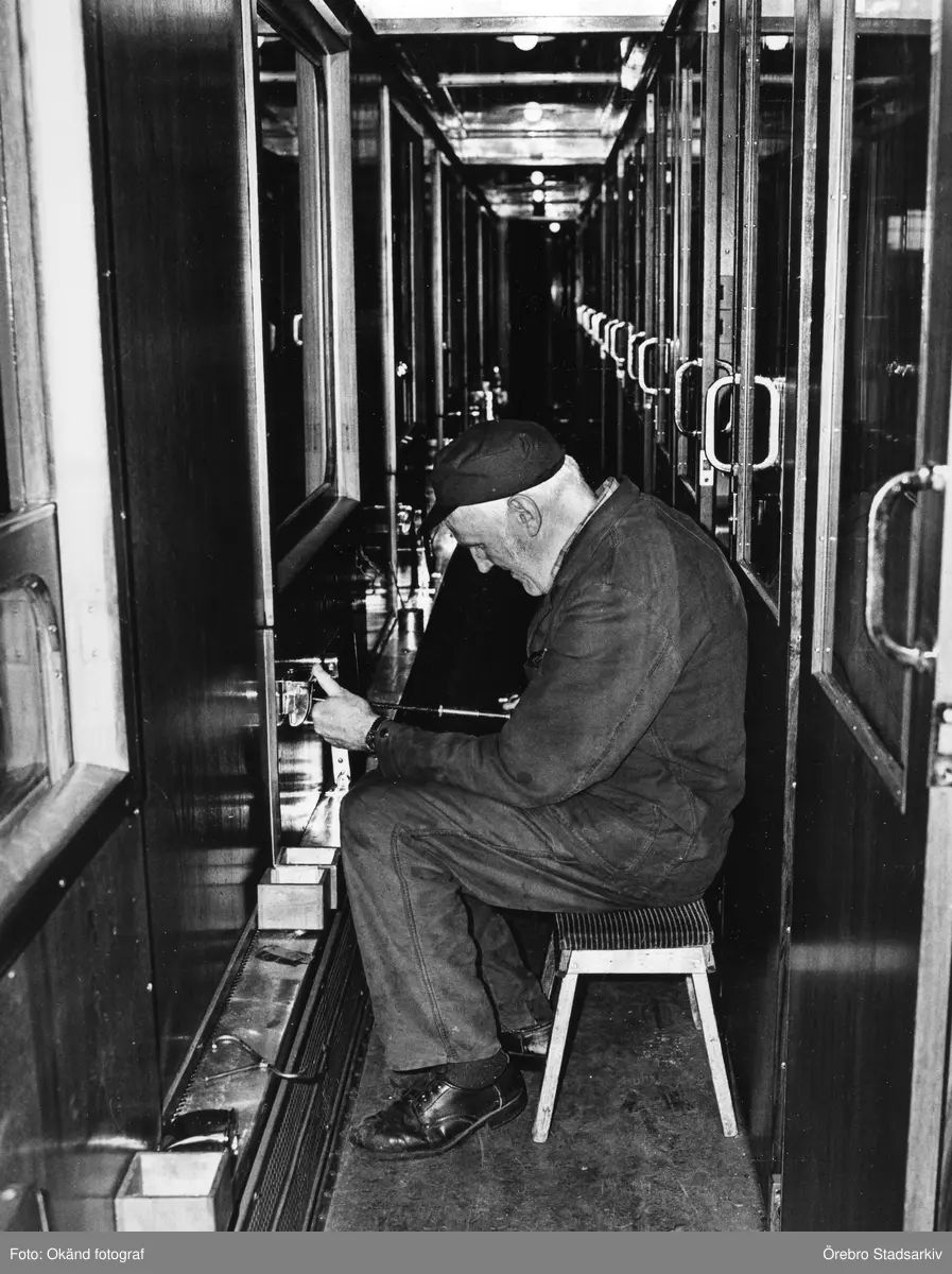 CV arbetare monterar askkoppar i en sittvagn, 1970-tal