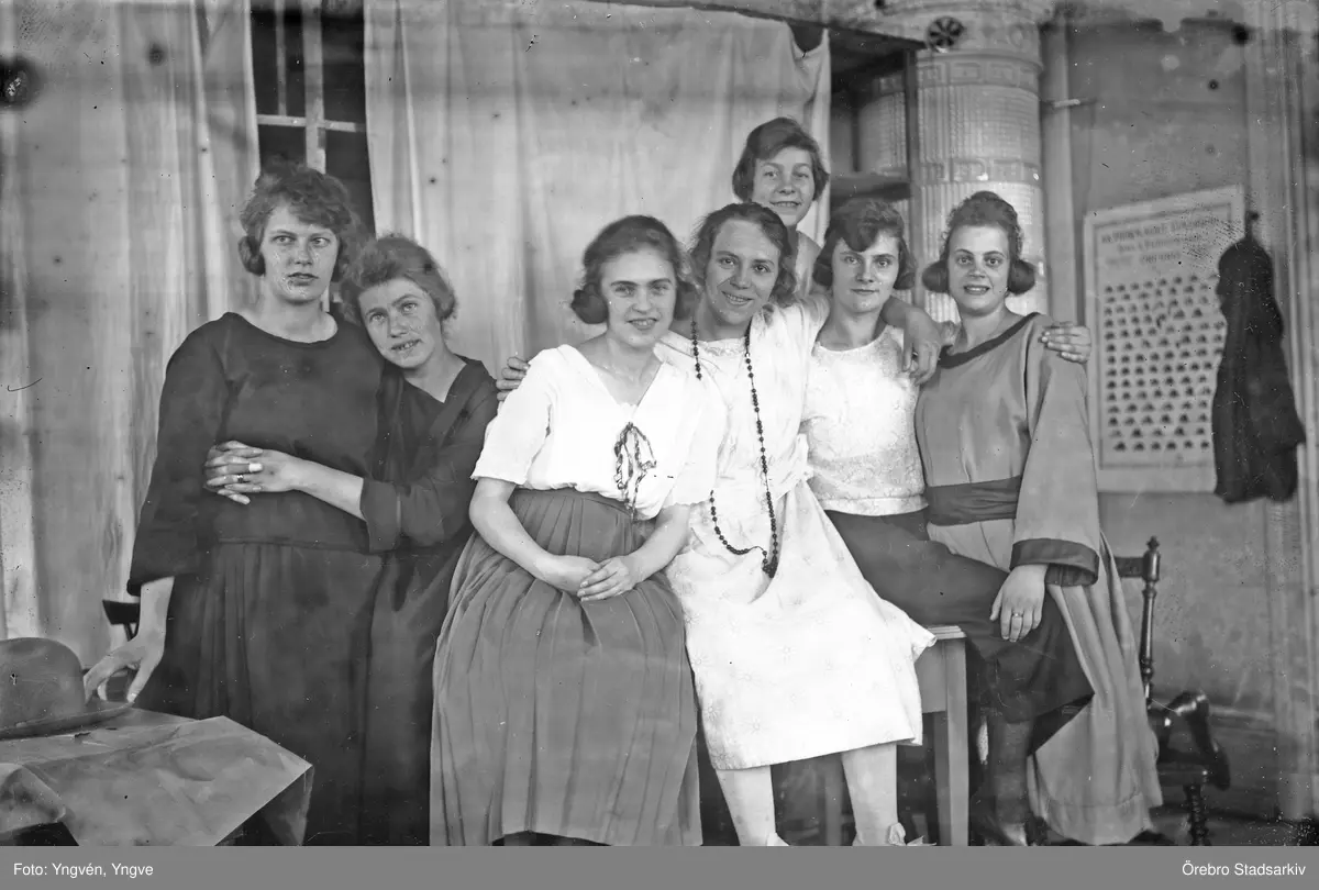 Modister på AB Lindberg strå- och filthattfabrik poserar framför kameran, 1910-tal
