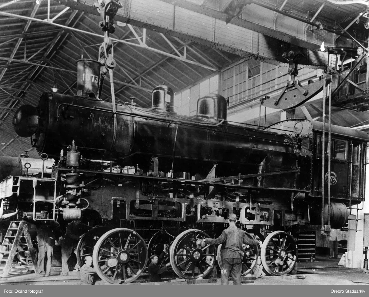 Ånglok på reparation i lokverkstaden på Centralverkstäderna, efter 1915