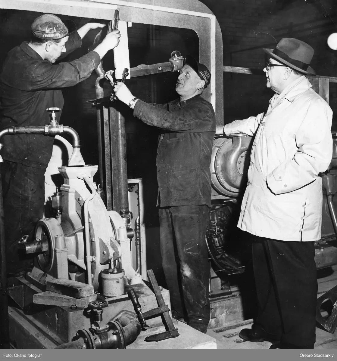 Överingejör Ekander övervakar montering på Centralverkstäderna, 1950-tal