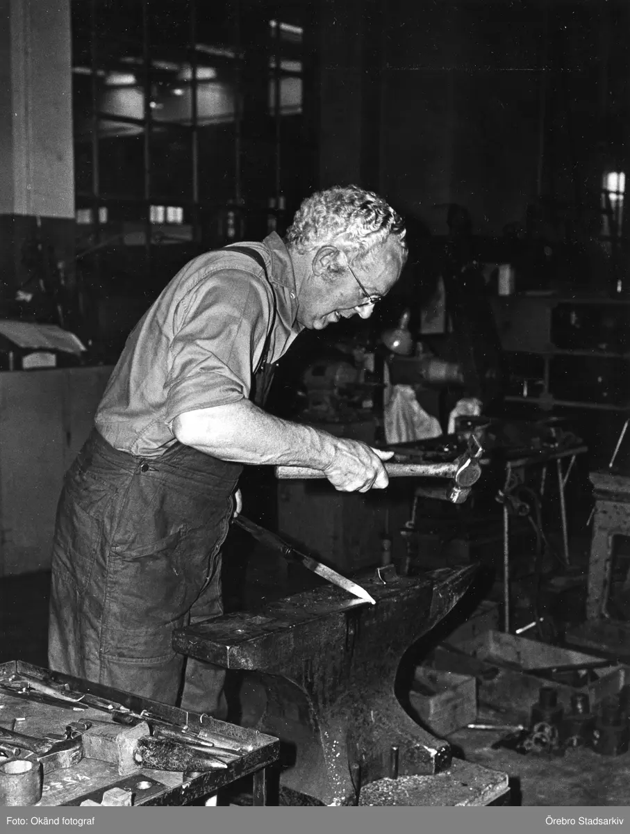 Smed vid sitt städ på Centralverkstäderna, 1960-tal