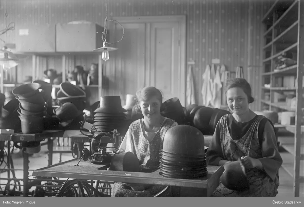 Hatttillverkning på AB Lindberg strå- och filthattfabrik, 1910-tal
