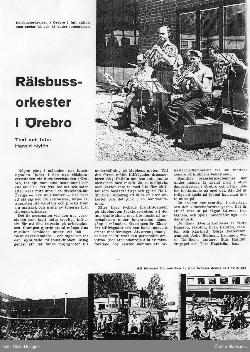 Artikel om Centralverkstädernas rälsbussorkester i Örebro, 1959