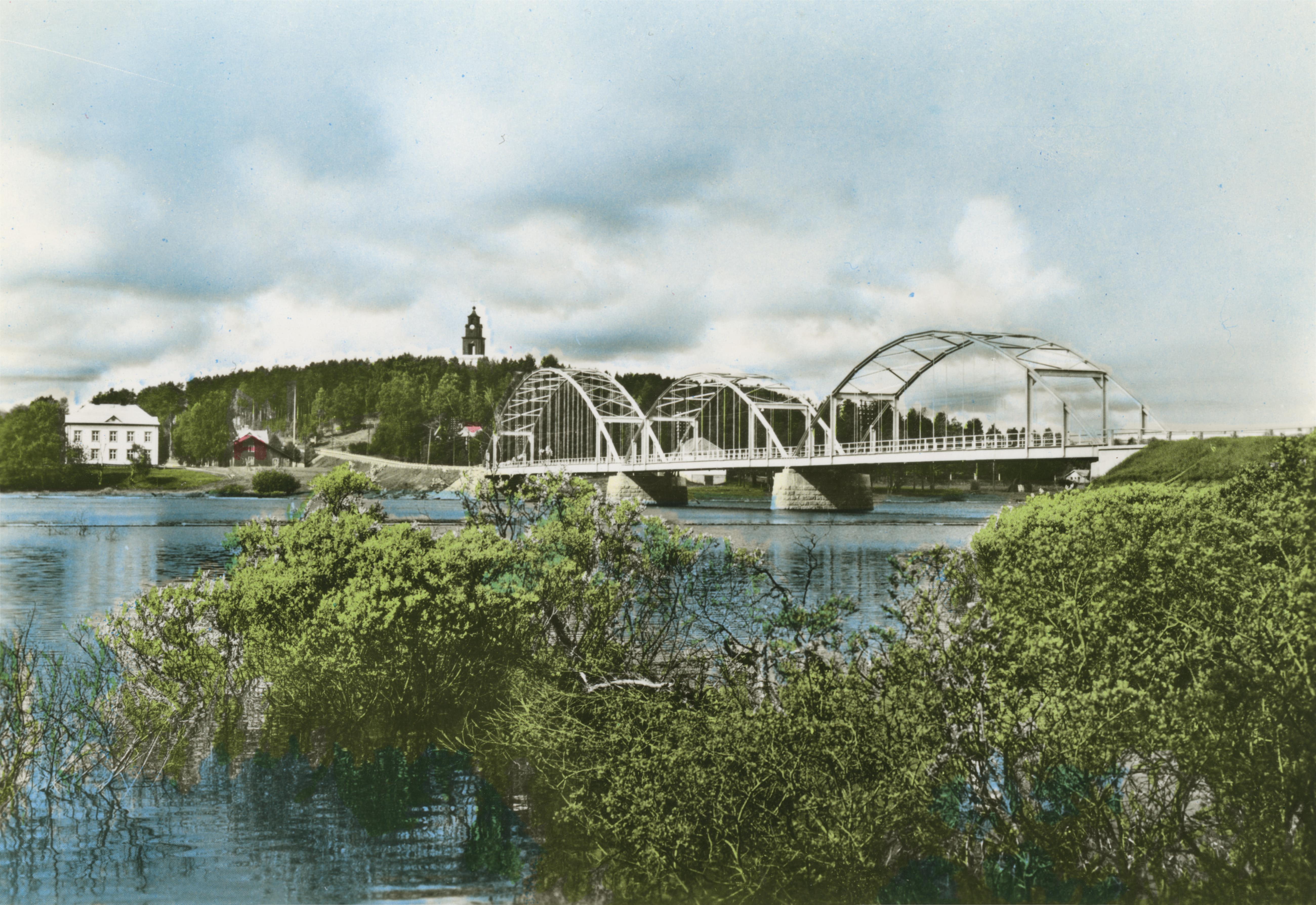 Bron över Ångermanälven. Handkolorerad variant av ac01232.