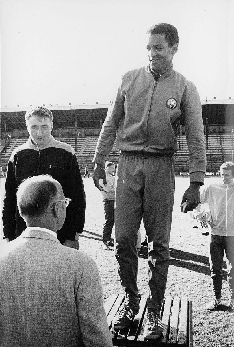 Prisutdelning i höjdhoppstävlingen. Segraren Robert Sainte-Rose,