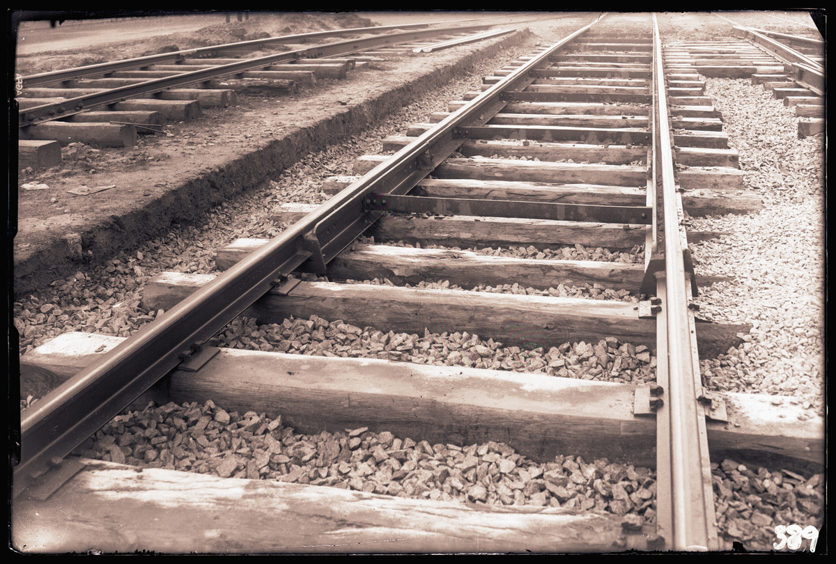 "Älvsborgsgatan. Övergång mellan vignol och rännskenan, 23/1 1932."