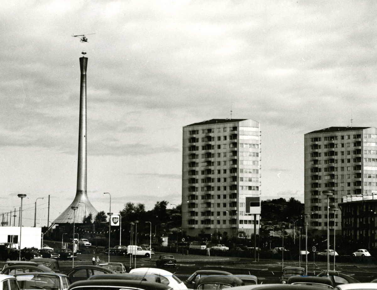 Titel: Järnbrott Marconigatan Panncentralen Tratten stod klar år 1963. Trattens funktion var att förse Göteborgs stads bostadsaktiebolag och Fastighets AB Göteborgsbostäders nyuppförda bebyggelse i Frölunda med värme och varmt tappvatten.