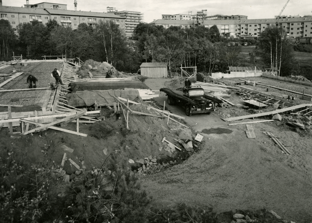 Titel: Södra Biskopsgården Radhusområdet är beläget utmed gatorna Vädertjänstgatan, Väderstrecksgatan, Vädersolsgatan, Väderskeppsgatan, Tövädersgatan och Väderskiftesgatan. Förberedelse för gjutning av grundplatta