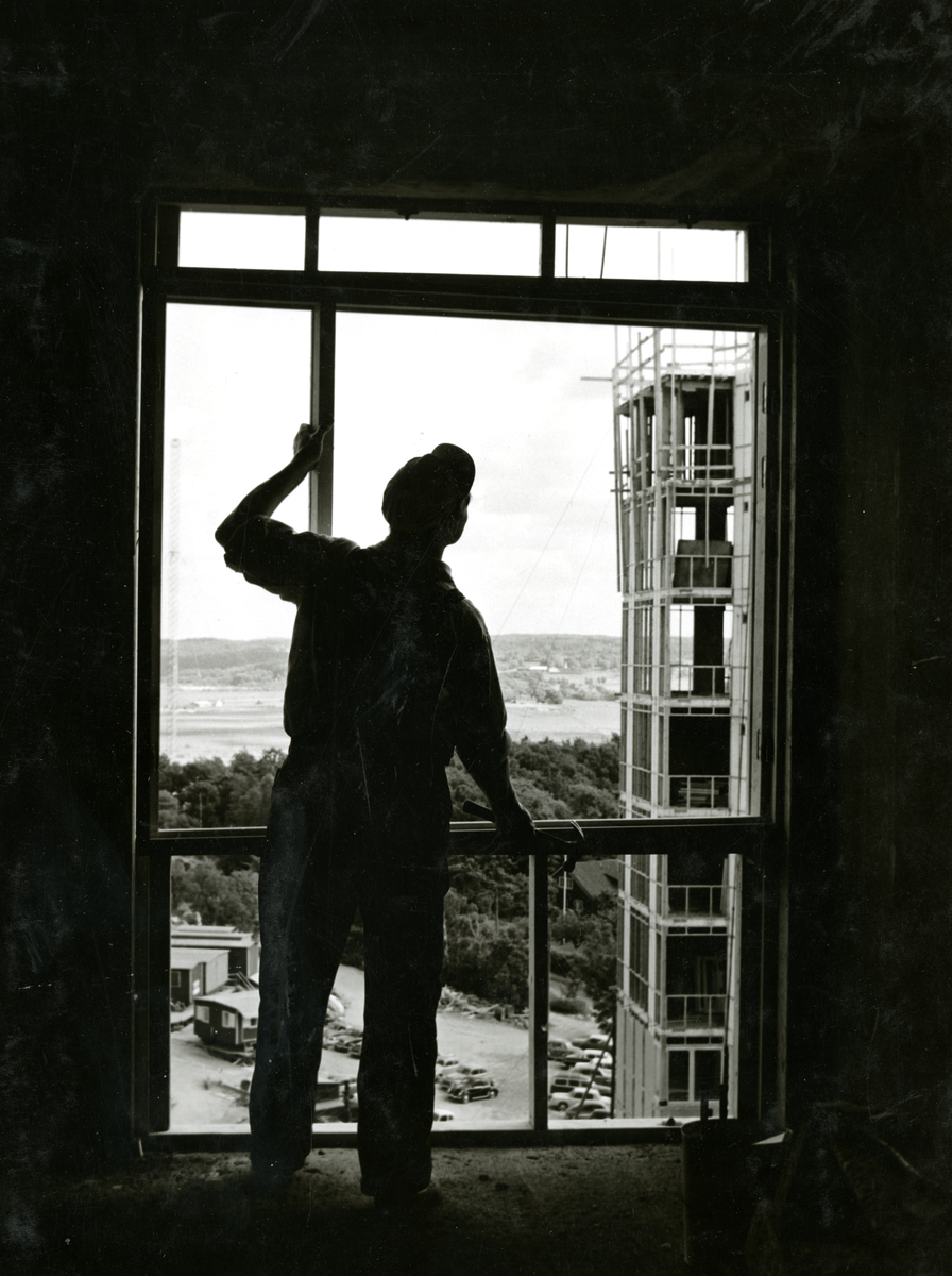 De 16 punkthusen i tolv våningar uppfördes under 1960-talets första år av Göteborgs stads bostadsaktiebolag.