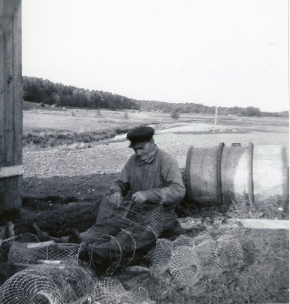 Nätlagning framför slakthuset vid Vadån, Döder Vad