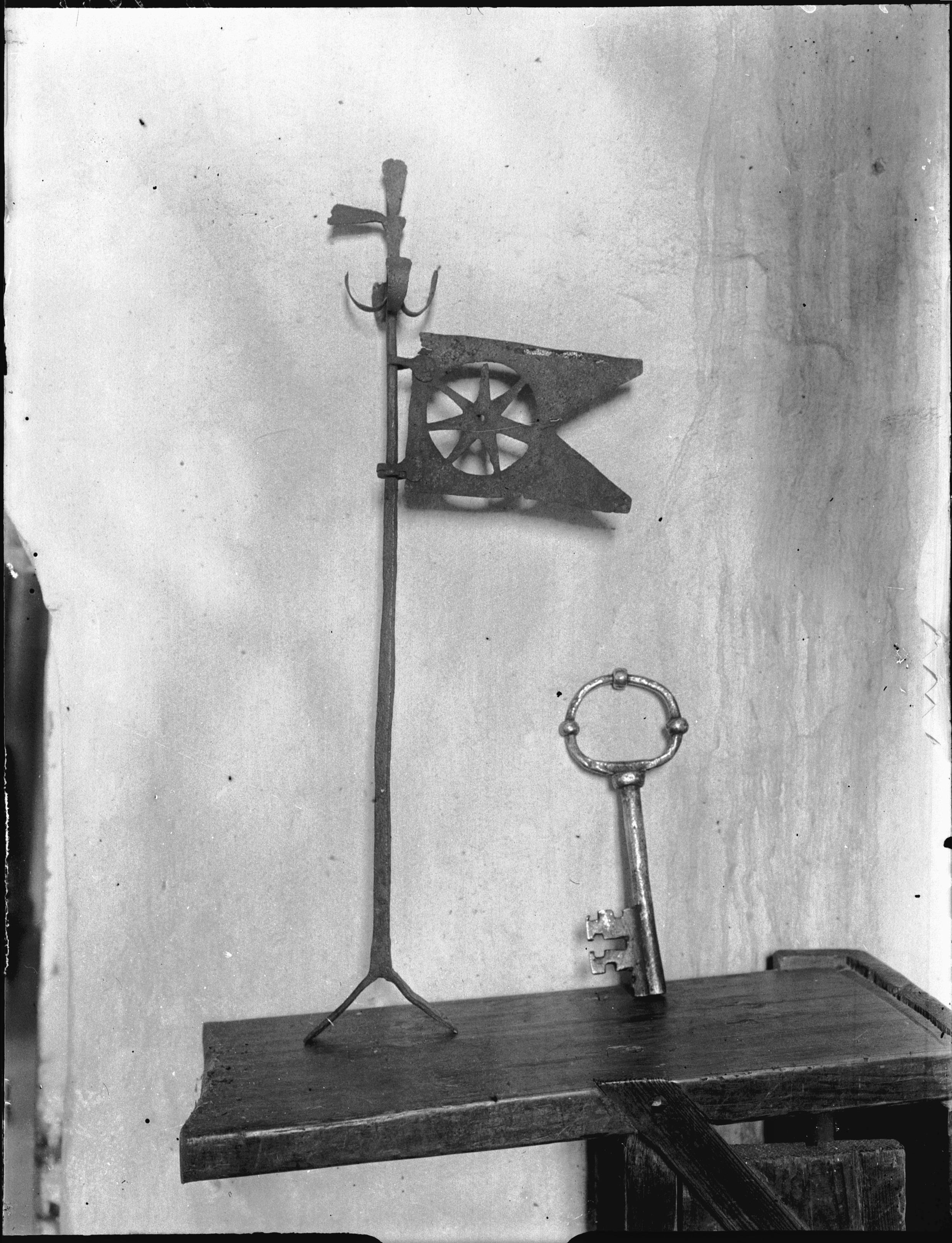 Vindflöjel av järn, samt nyckel. Snabbinv.
