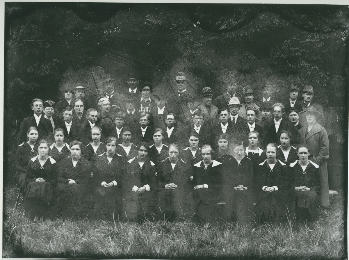 Vänersborg. Elfsborgs läns Dövstumskola, senare Vänerskolan. gruppbild lärare och elever