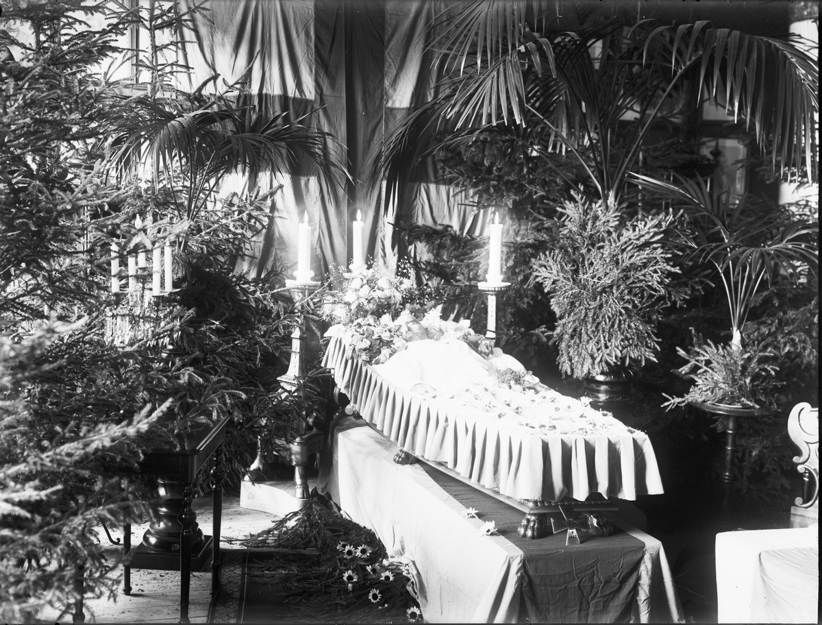 Stadsläkare Carl Bylund (1835-1907) på Lit de parade. Vänersborg.