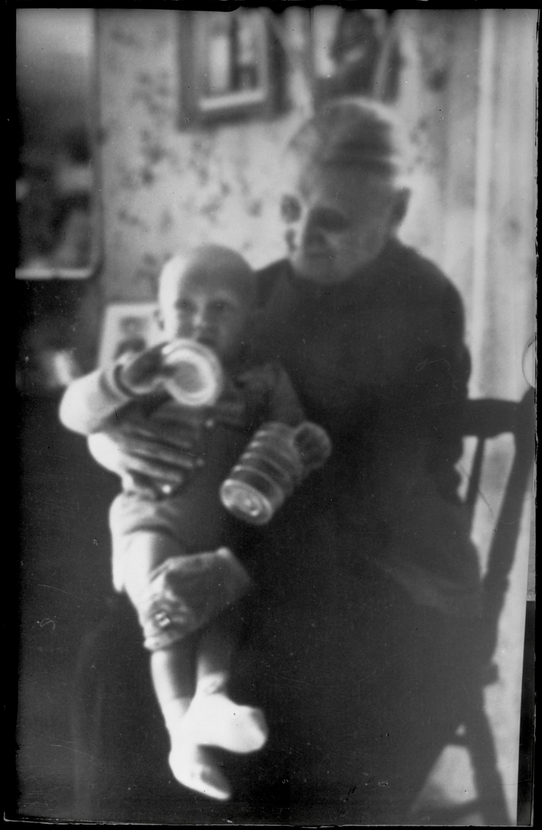 Äldre kvinna med litet barn i knät