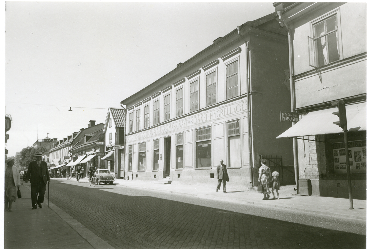 Stora gatan med Axel Hygrell's järnhandel. C:a 1950-tal.