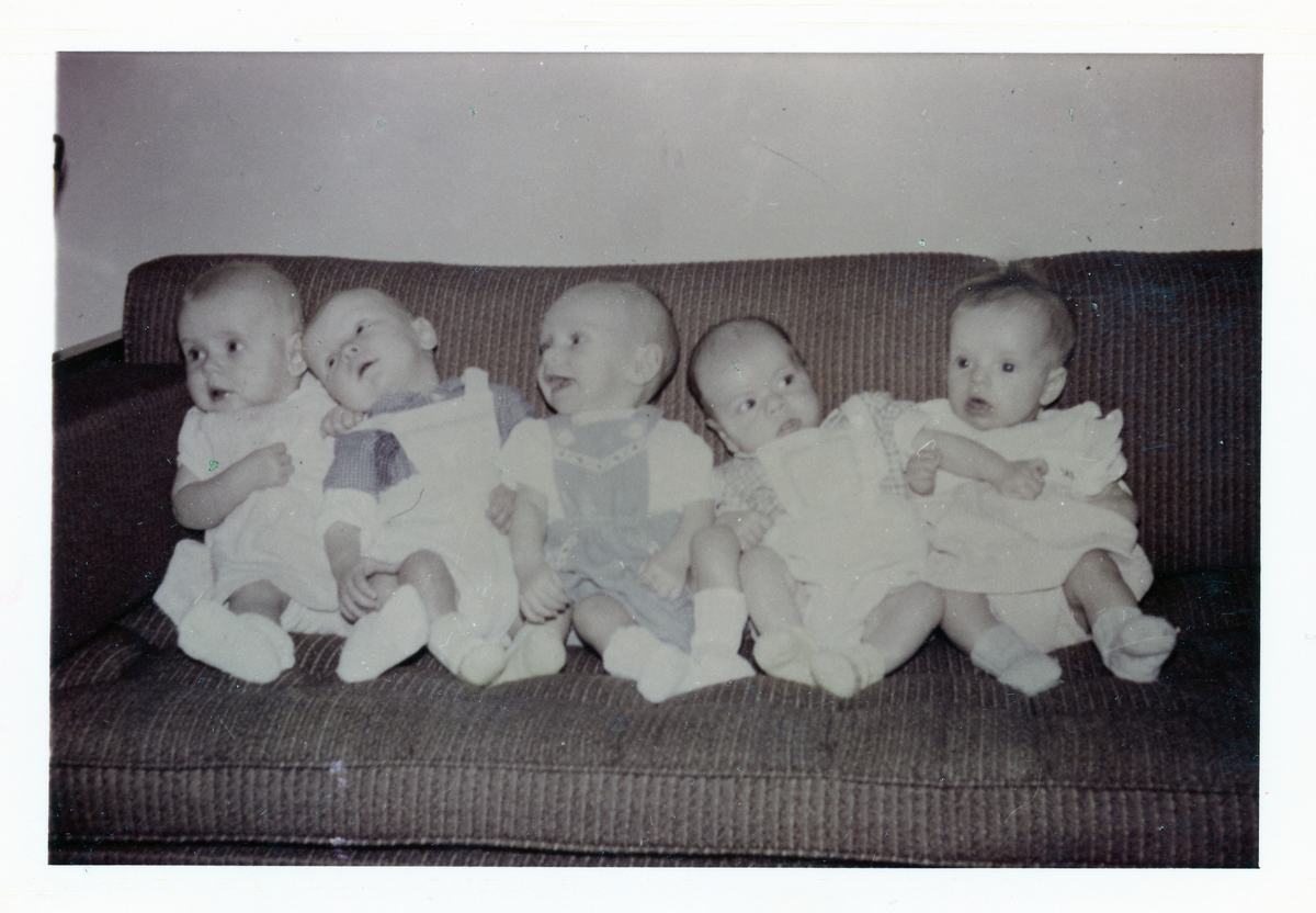 Fotografi på barn som sitter uppradade i en soffa på Lilla Källbäck, 1963.