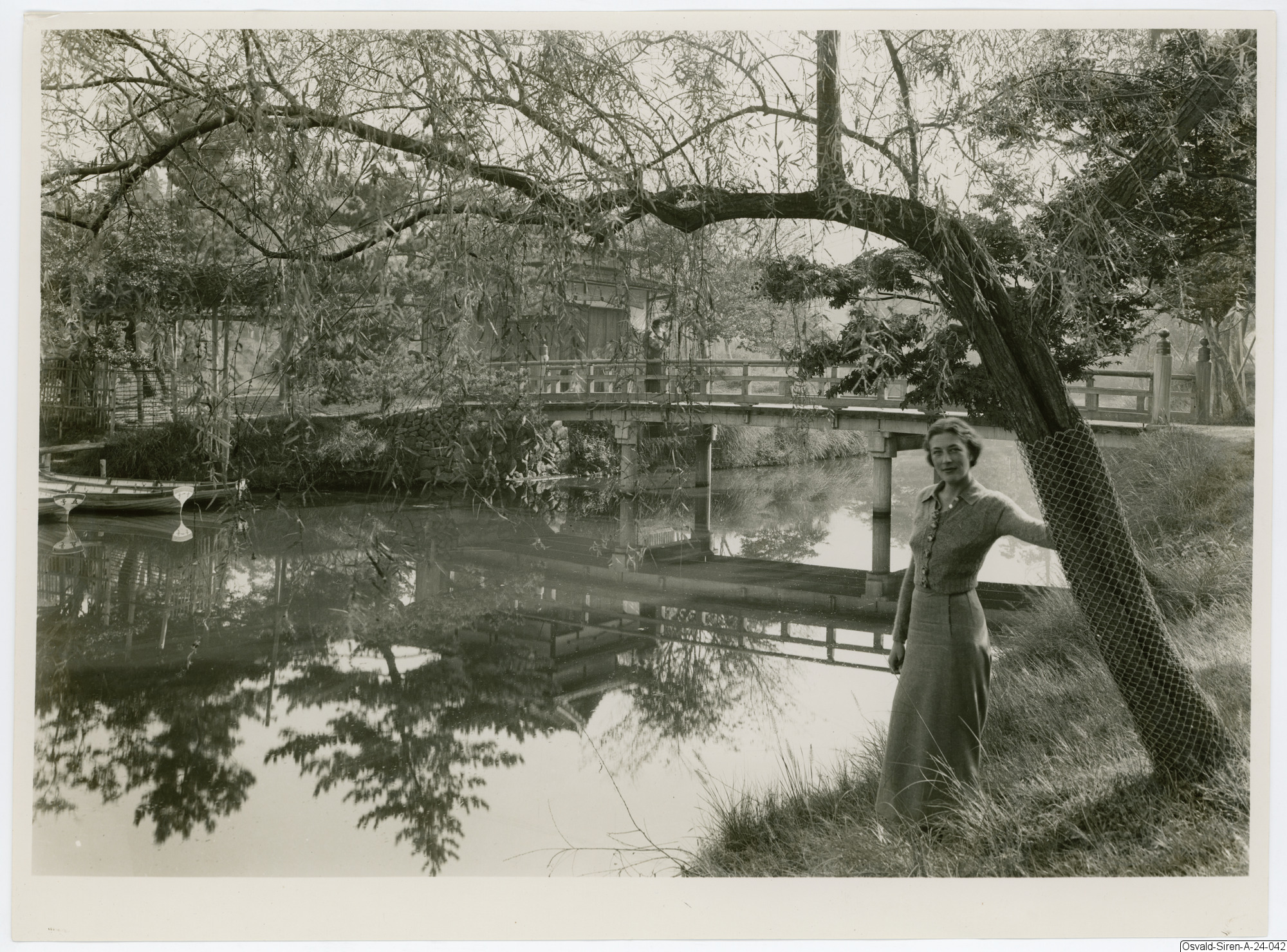 Träd, Vattendrag, Park, Kvinna, Bro, Fotografi, Photograph