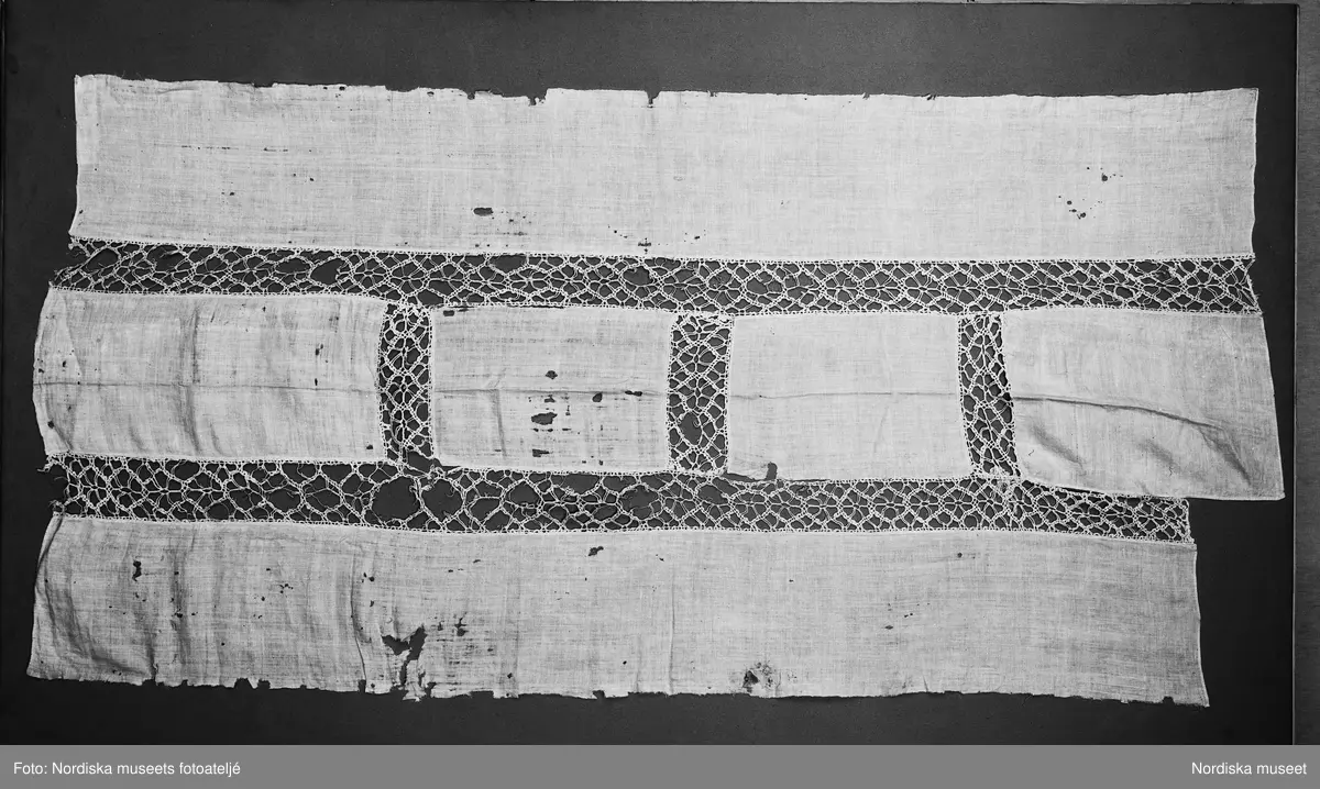 Katalogkort med foto. Påskrift Fru B. Gyllenhammar. "Sängbonad. Hälsingland Ovanåkers sn Edsbyn, Unnesgård. Detalj av mittparti se lapp 2".