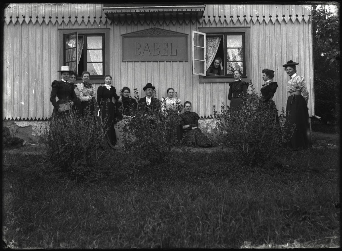 Elever framför Babels hus