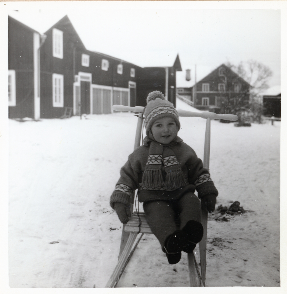 Titel: Fotografi på Per-Olov sittande på en spark.