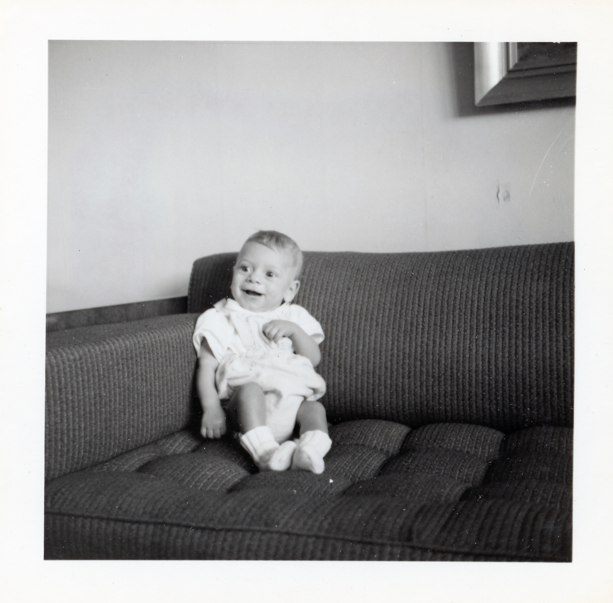 Fotografi på Jonas sittande i ett hörn av en soffa i Lilla Källbäck.