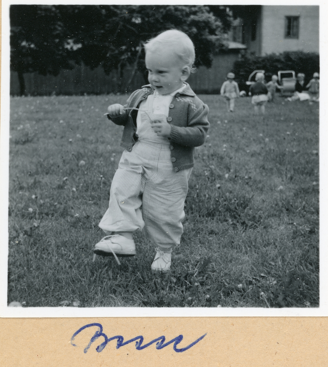 Bild på Bosse med andra barn i bakgrunden, sommaren 1958.