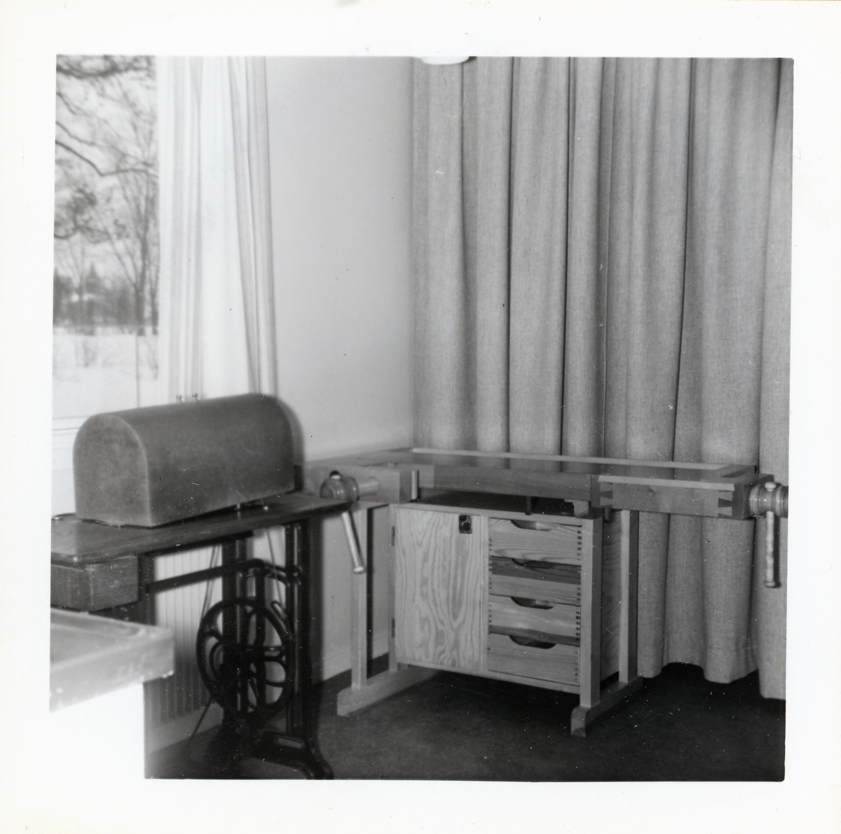 Fotografi på teorilokalen på Lilla Källbäck, färdig att användas 1:a september 1962.