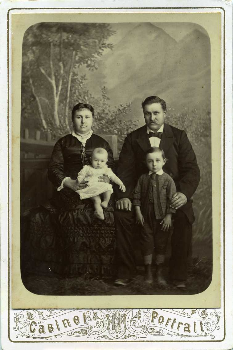 En okänd kvinna och man. Kvinnan har ett spädbarn i knät och framför mannen står det en liten pojke.